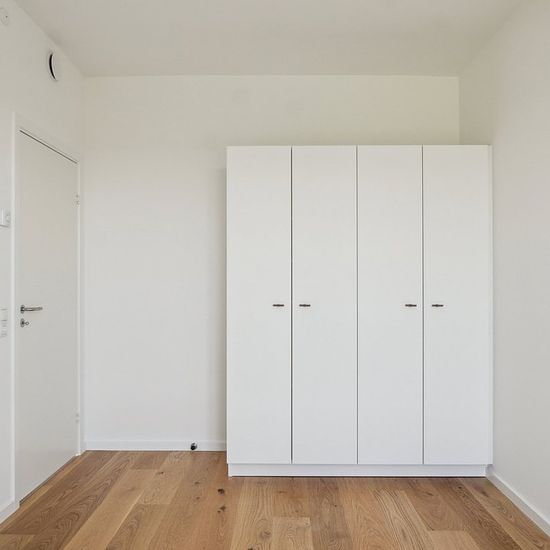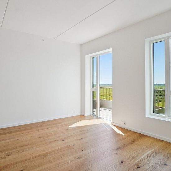 About the residence: The residence is a bright, well-arranged 2-room apartment with a well-optimized floor plan, featuring a good bedroom as well as a nice open kitchen/living area with space for both a dining table and a cozy sofa area. From the kitchen/living area, there is access to the apartment’s balcony, from which you can enjoy the most beautiful view of Fælleden’s rich nature and wildlife. The residence has large windows that invite daylight and the fantastic nature inside, as well as beautiful oak parquet floors and underfloor heati...