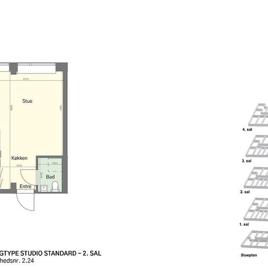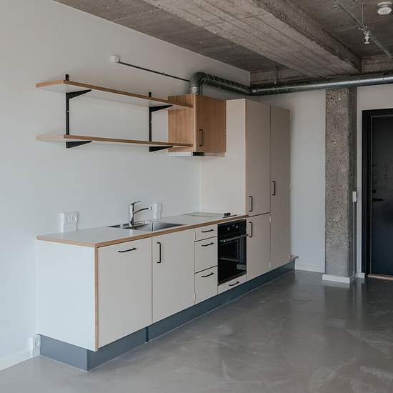 Studio med udsigt til Kløvermarkens grønne flader. Indretningen er enkel og funktionel med plads til både søvn og måltider. Det store vindue skaber et lyst og åbent udtryk. Køkkenet er placeret langs væggen og har alt i hårde hvidevarer. Badeværelse med bruseniche. Et roligt hjem, hvor det hele er samlet på få kvadratmeter. Ejendommen - Mere end bare din egen bolig: Siljangade rummer 138 lyse studios med eget køkken og bad – og adgang til alt det ekstra, der gør en forskel i hverdagen. Her er fælles tagterrasse med udsigt over byen, loungeom...