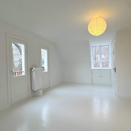 On a quiet, secluded road by Bernstorff Palace and Park lies this cozy rental in a semi‑detached house. On the ground floor there is a large bright entrance hall and a bathroom with a shower as well as a good bedroom. Further on the ground floor is the heart of the house: a large cozy kitchen that is open to a spacious dining area and the living room. The living room has a cozy fireplace and access to the lovely south‑facing garden. The garden is spacious and is shared with the owner of the property. However, the rental unit has a private wo...