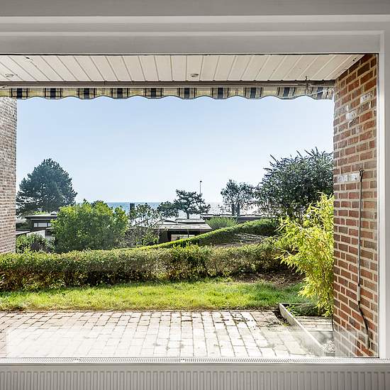 The property offers a spacious entrance hall with access to a sleek, modern bathroom with a walk-in shower. The east-facing living room features a cozy wood-burning stove and direct access to a lovely terrace and a small, private garden – perfect for morning coffee with full views over the Øresund and beautiful sunrises. The large, open kitchen-dining area has plenty of counter space and is ideal for both everyday use and entertaining guests. The property also includes a room that is divided into two – one of which functions as a walk-throug...