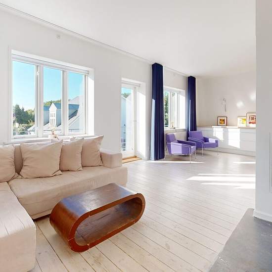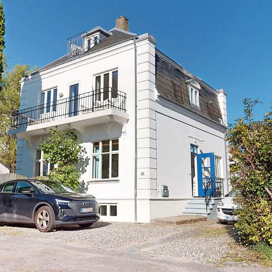 Welcome to this solid villa on a quiet side street off Strandvejen in Taarbæk, Klampenborg. The apartment spans two floors (1st and 2nd floors) and comes with 2 private parking spaces, its own garden plot, and 2 balconies with views over the water and Dyrehaven. Note: The apartment is available for rent immediately and until 31/12-26 – possible extension to 31/10-27. The apartment is preferably rented partially furnished. The apartment comprises: an entrance hall with closets for outerwear, a lovely new bathroom with shower, a large open kit...