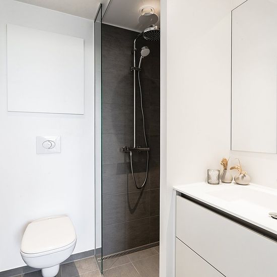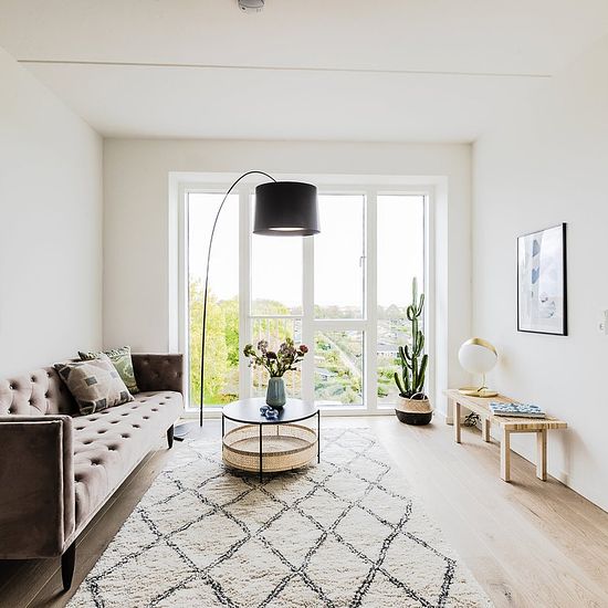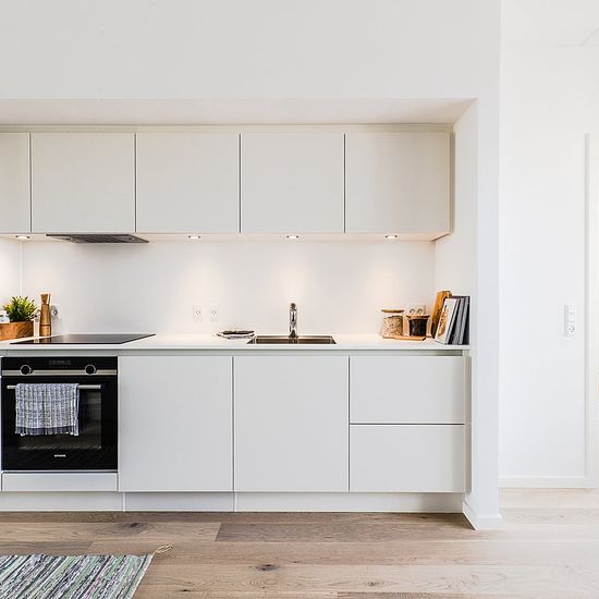 Apartment 154 appears as a modern and well-furnished residence with a functional floor plan. When entering the apartment, you step into an entrance hall with access to several of the home's rooms as well as storage options. The heart of the home is the large open kitchen-dining area and living room, which is centrally located. The kitchen is arranged in a corner along the wall and offers ample countertop space as well as room for appliances. Adjacent to the kitchen is space for a dining table, and the living room is open to this area, creati...