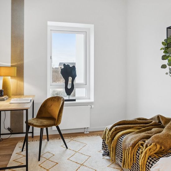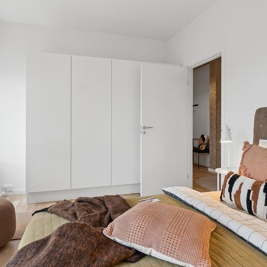 The apartment appears as a well-designed 3-room residence with a functional layout that makes optimal use of the space. You enter a spacious hallway with access to all rooms in the home, creating a good and practical distribution. The property contains two separate rooms, making it ideal for couples, a small family, or as a shared apartment. The bedroom is quietly located and has space for both a bed and storage, while the extra room can be used as a children's room, office, or guest room. The kitchen and living room are integrated into one ...