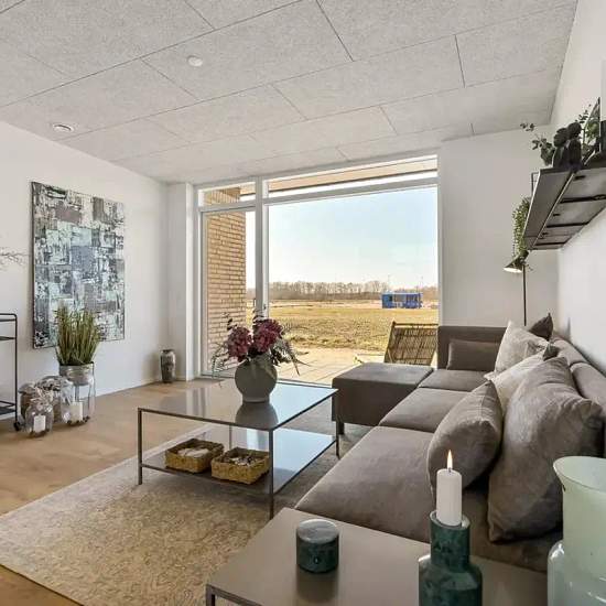 In a quiet, newer residential area in Sunds, this inviting terraced house with three rooms and its own private terrace is now available. The home has been built with a focus on functionality and quality, and it is ideal for couples, families with children and those who want a modern home with space and outdoor living. The heart of the home is the open kitchen-dining area, where the kitchen is finished in light materials and equipped with all major appliances. From here there is direct access to a private, tiled terrace and a green garden. A...