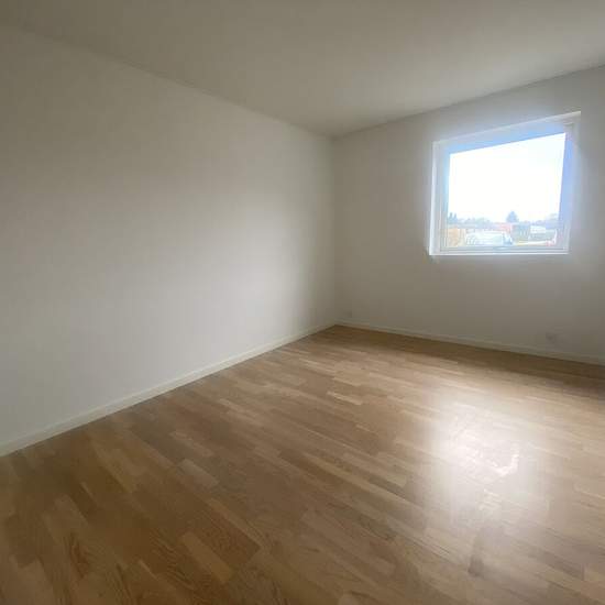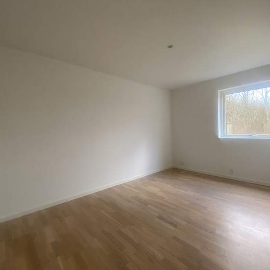 Newly built end-terrace house from 2008, 94 m2. The terraced house includes: Private fenced front garden and back garden with lawn and terrace. Entrance hall, cupboard with sliding doors with space for a washing machine and dryer. Bathroom with shower enclosure, washbasin with cupboards underneath. Large living room with open kitchen and access to a west-facing terrace. 3 large bedrooms. Underfloor heating throughout. Large front garden and covered entrance area as well as a small storage shed. Parking with 1 allocated space and guest parkin...