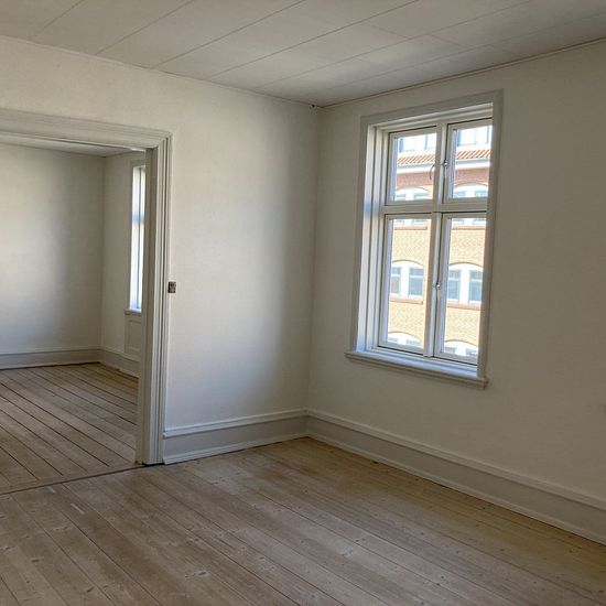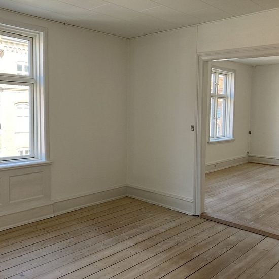 Large 4-room apartment located on Boulevarden for rent. When you step into the apartment you enter a bright entrance hallway that connects the entire apartment. From the hallway you'll find a bathroom with a shower and a separate toilet with a sink. The apartment also contains a lovely, new kitchen with all major appliances, two adjoining living rooms and two good bedrooms. The many rooms offer a variety of furnishing options and make the apartment well suited for sharing. From the property it is not far to everything you could wish for. T...