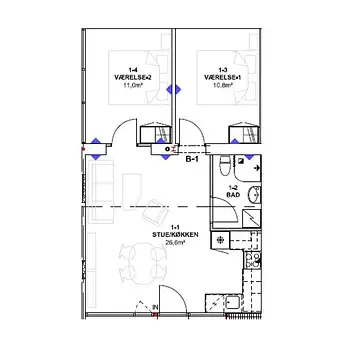 1 Room - Apartment - 40 m²Esbjerg