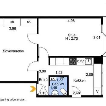 1 Room - Apartment - 33 m²2700, Brønshøj