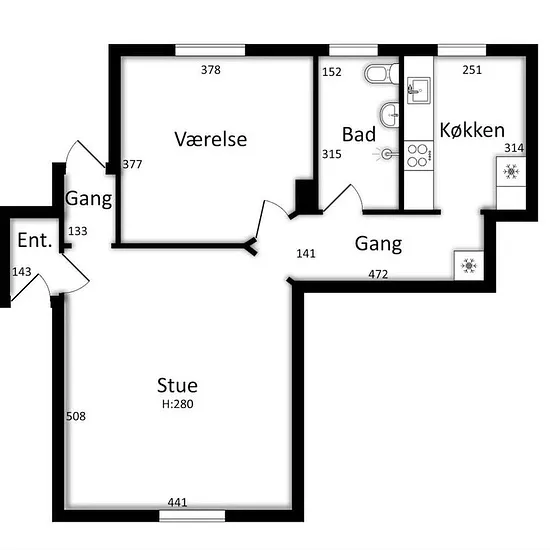 - 2 room rental homes in Skive cost on average kr4,423 and are on average 62 m²