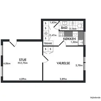 - 2 room rental homes in Horsens kommune cost on average kr5,959 and are on average 63 m²